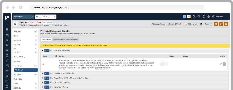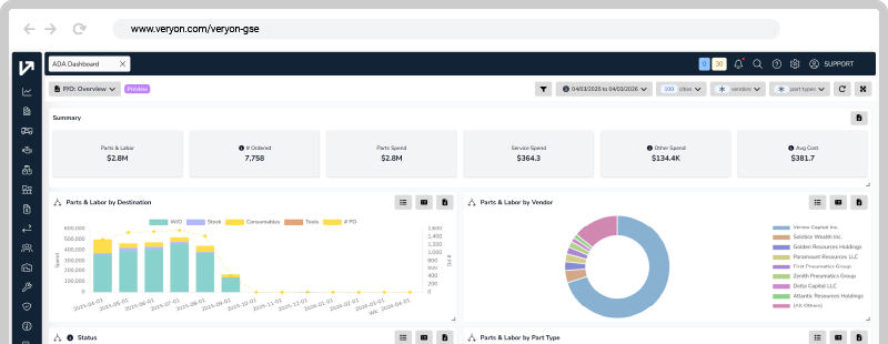 Veryon GSE, formerly EBIS GSE, brings together maintenance tracking, asset lifecycle management, telemetry integration, reporting, and inventory control into a single system. Purpose-built for commercial airlines, ground service providers, FBOs, and airport operators, its advanced analytics and mobile tools enable data-driven decisions that boost reliability and efficiency. Veryon GSE is made up of four key areas
