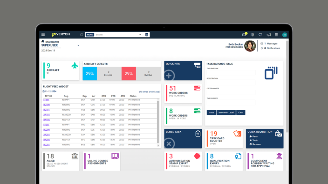 Explore a variety of topics about Veryon Tracking’s integrated and optimized aviation maintenance, inventory, work orders, and flight operations software. Plus, join sessions focused on harnessing the power of Veryon Publications to bring your full library of aircraft tech pubs and regulatory content together in one app for quick and compliant action.